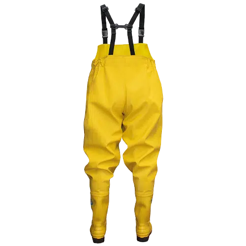 Botín de seguridad, fabricado en cuero de excelentes propiedades físicas, entre suela de poliuretano de baja densidad liviana, planta de poliuretano de alta densidad de resistente a los hidrocarburos y sus derivados. Sistema de cierre en U con fuelle completo que protege de penetración de partículas y humedad al pie. Calzado dieléctrico / aislante conforme a norma NCH 2147/2.
