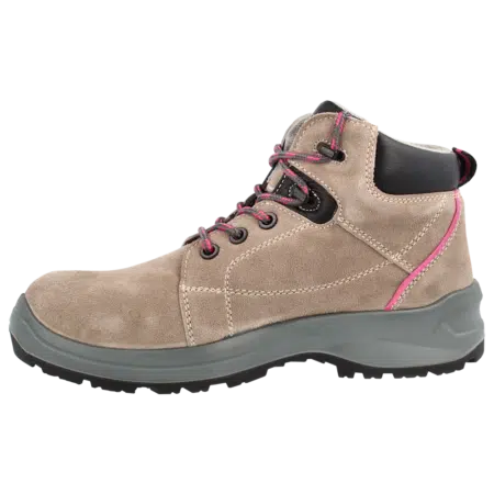 Botín de seguridad, fabricado en cuero gamuzado suave y flexible. Suela y entre suela de poliuretano, ligera y flexible. Excelente resistencia a los hidrocarburos.